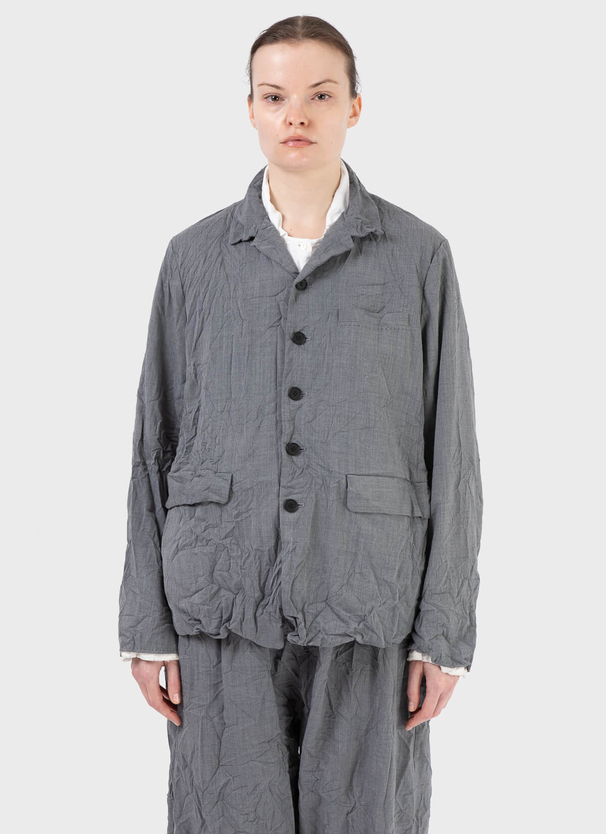 -Running stitch detail at cuff and chest pocket