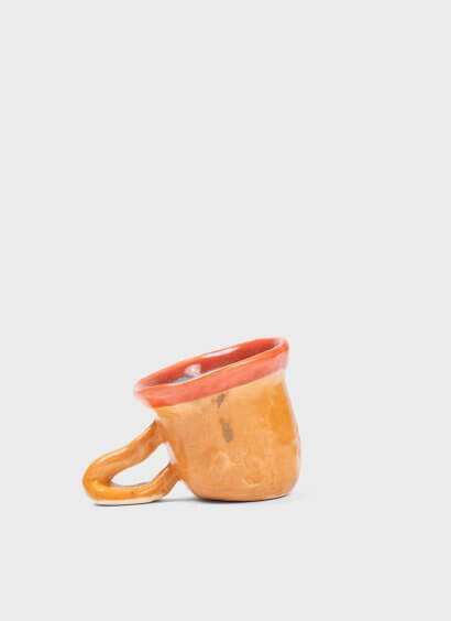 Crafted by pure accident when first time ceramicist Philip wanted to make an ordinary cup. He had built up the body and was ready to move it to a plate to be fired but the body collapsed. He decided to fire it up regardless and the Lazy cup was born.