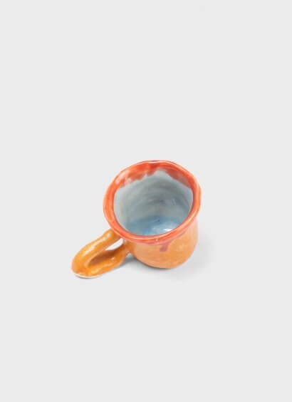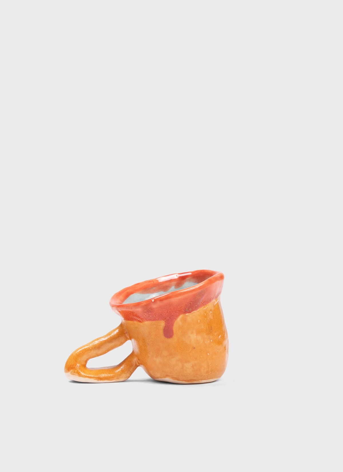 Crafted by pure accident when first time ceramicist Philip wanted to make an ordinary cup. He had built up the body and was ready to move it to a plate to be fired but the body collapsed. He decided to fire it up regardless and the Lazy cup was born.