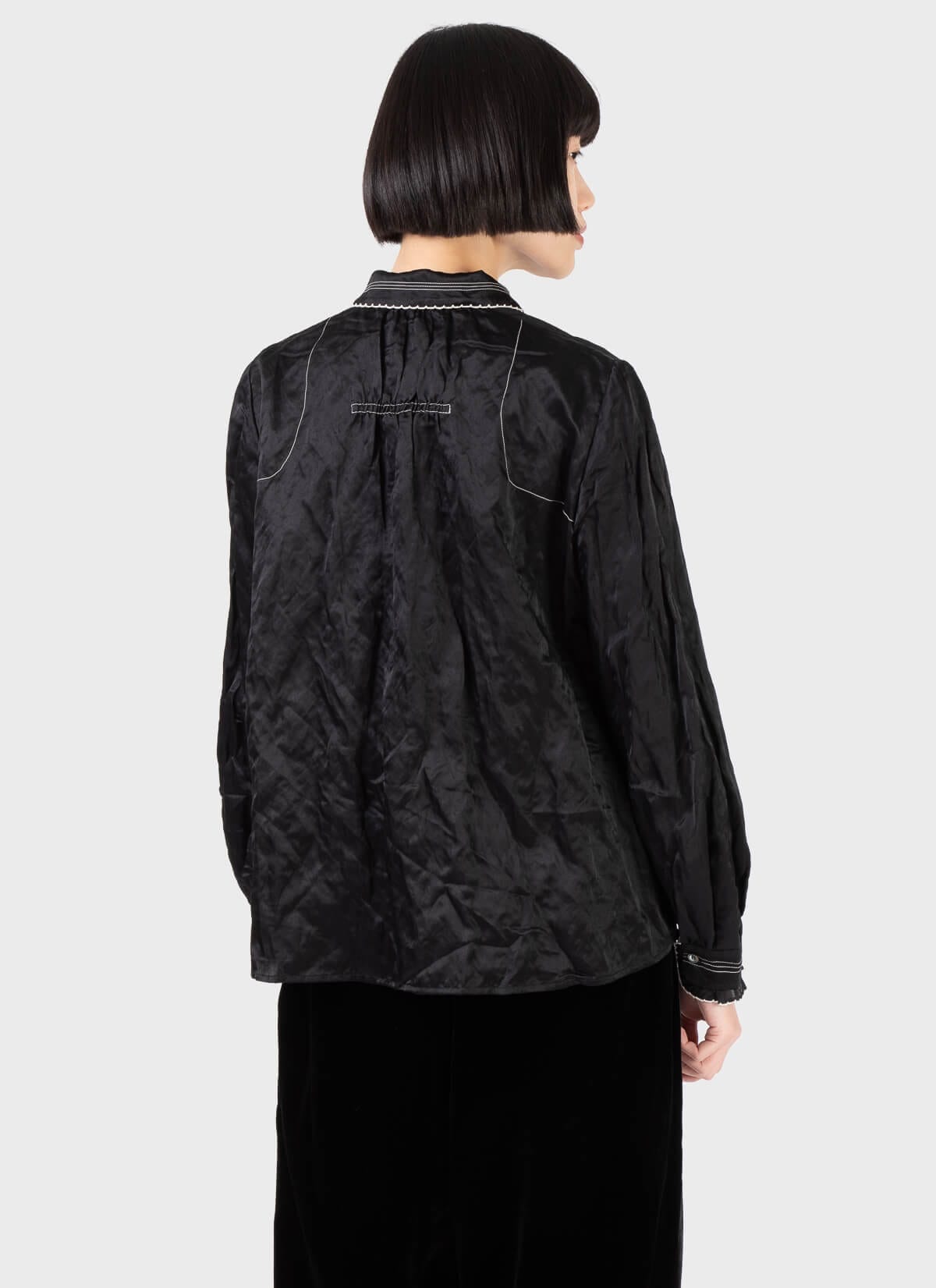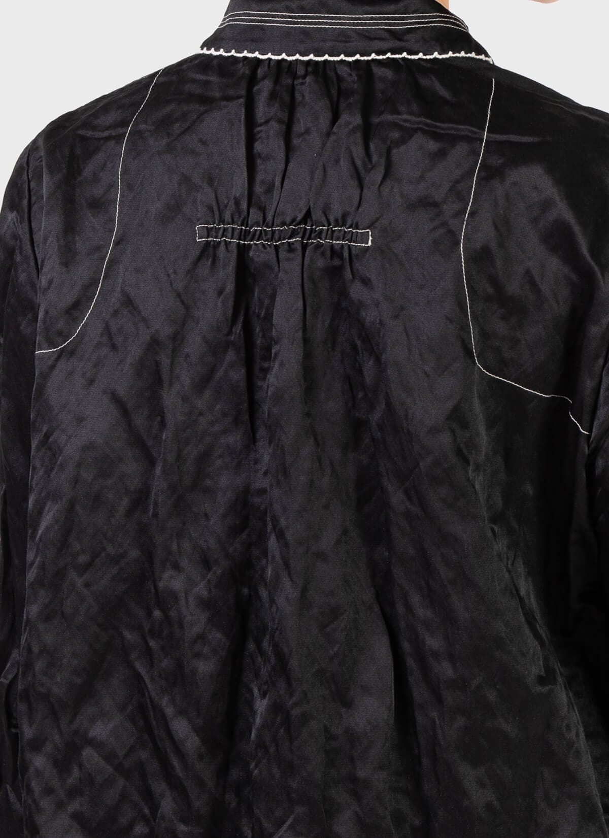 -Contrast top stitch detail at collar
