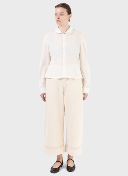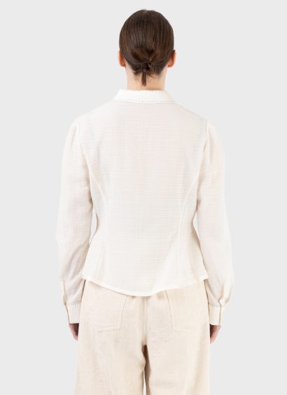 -Hand stitch detail at collar, shoulder seam and cuff