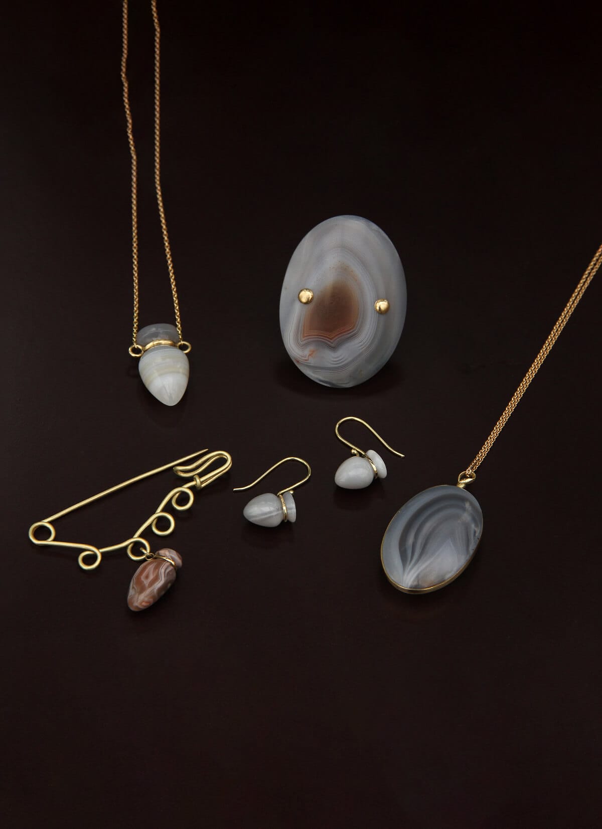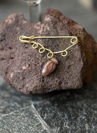 描述 -Hand carved Scottish agate -18ct yellow gold amulet pin -Handmade in England 信息 重量: 1 公斤 Brand: SIAN EVANS Color: gold
